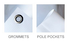 Pole pockets: are extra material wrapped around to the back side of the banner and glued to create a smooth 2 inch or 3 inch seam for a pole or rode to go through the loop of material. They are used to hang the banner.
